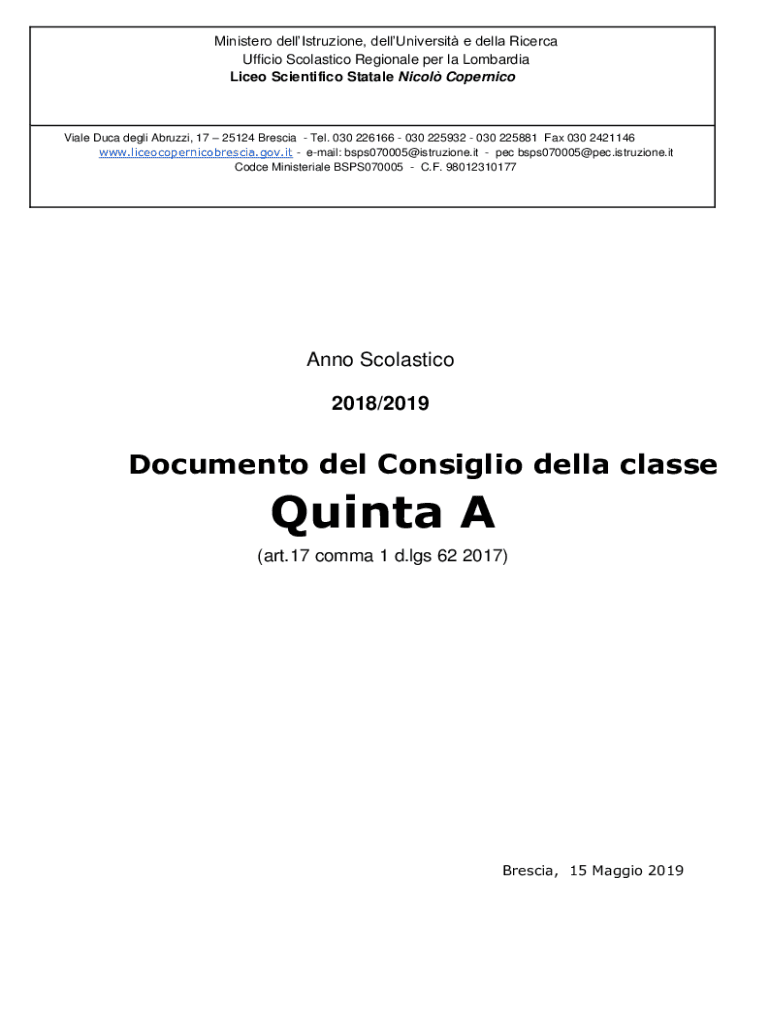 Ministero dellIstruzione, dellUniversit e della Ricerca Ufficio Scolastico Regionale per la Lombardia Liceo Scientifico Statale Nicol CopernicoViale Duca degli Abruzzi, 17 25124 Brescia Tel. 030 226166