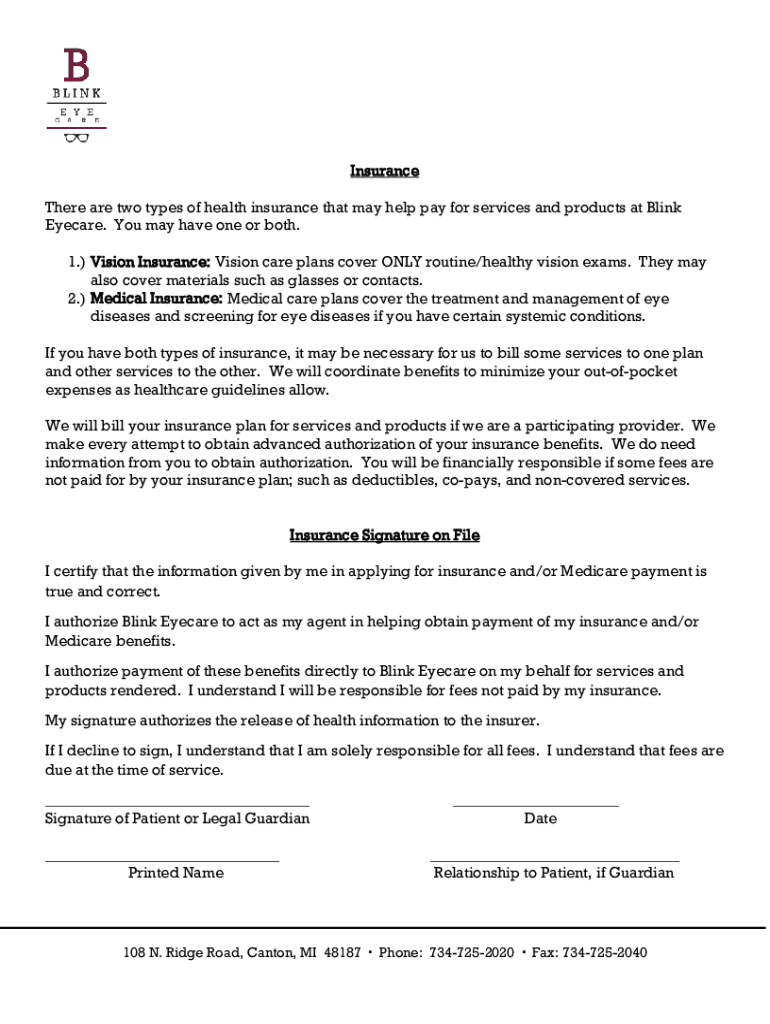 Get the free Patient Information Form - Blink Eyecare