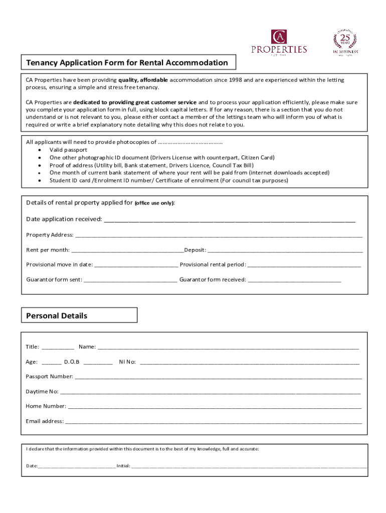 Tenancy Application Form for Rental Accommodation CA Properties have been providing quality, affordable accommodation since 1998 and are experienced within the letting process, ensuring a simple and