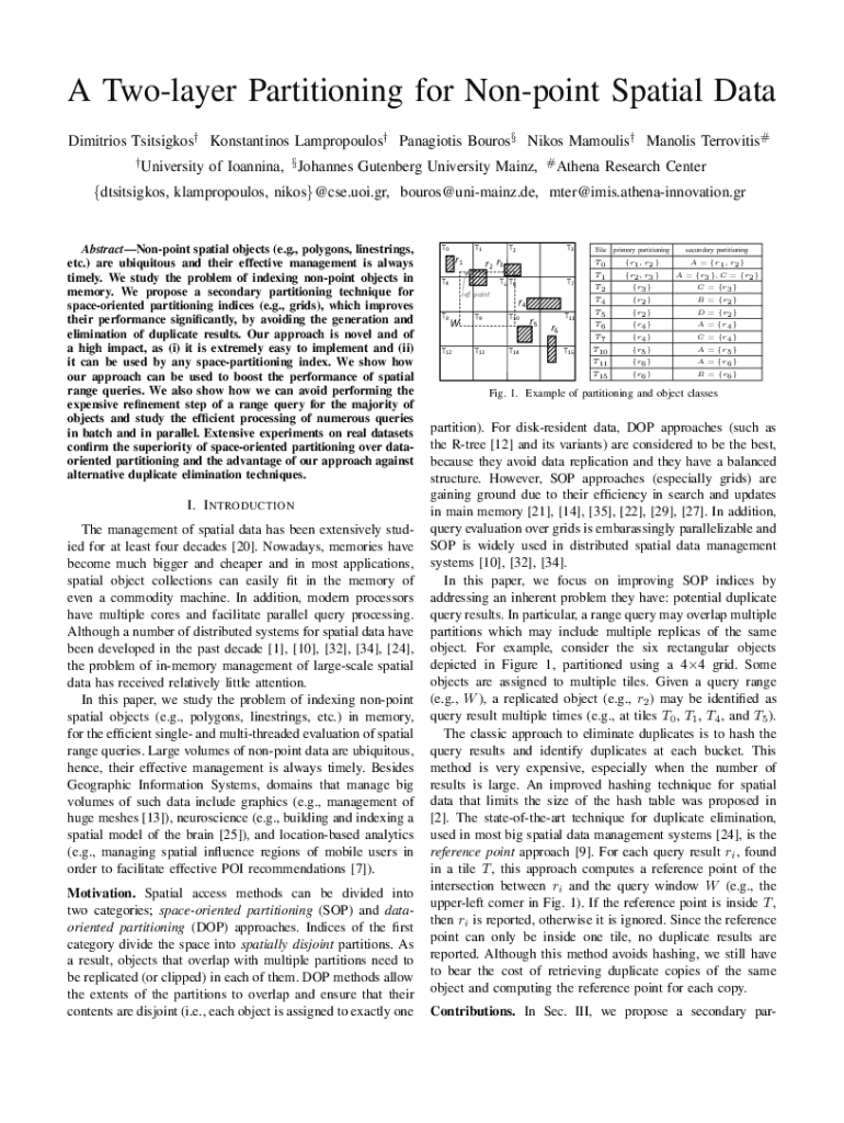 A Twolayer Partitioning for Nonpoint Spatial Data Dimitrios Tsitsigkos Konstantinos Lampropoulos Panagiotis Bouros Nikos Mamoulis Manolis Terrovitis# Universityof Ioannina, Johannes Gutenberg University
