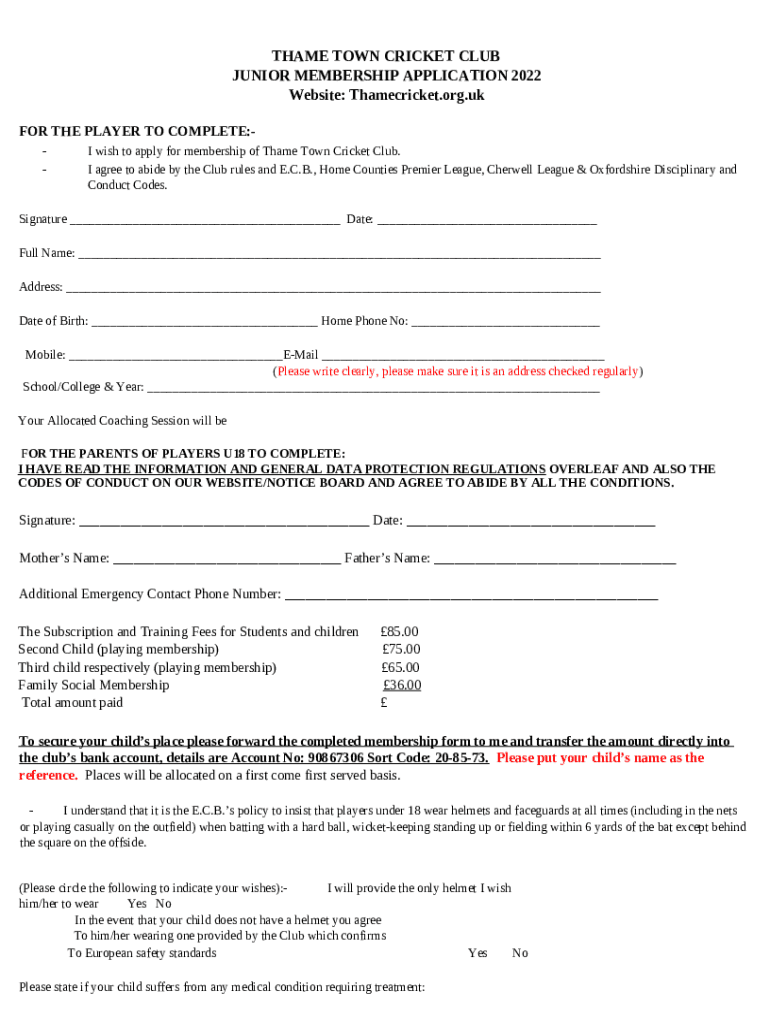 The Thame teenager to play at Lord's is a fillable form in MS Word extension which can be filled-out and signed for certain purpose. In that case, it is furnished to the relevant addressee to provide certain info and data. The completion and signing is possible manually in hard copy or with an appropriate solution like PDFfiller. Such applications help to fill out any PDF or Word file without printing out. It also lets you customize it for the needs you have and put legit digital signature. Once done, the user ought to send the Thame teenager to play at Lord's to the respective recipient or several of them by email and even fax. PDFfiller provides a feature and options that make your Word form printable. It has various settings when printing out. It does no matter how you'll send a form after filling it out - physically or by email - it will always look neat and firm. To not to create a new writable document from scratch again and again, turn the original document as a template. Later, you will have an editable sample.