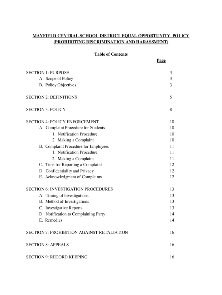 MAYFIELD CENTRAL SCHOOL DISTRICT EQUAL OPPORTUNITY POLICY