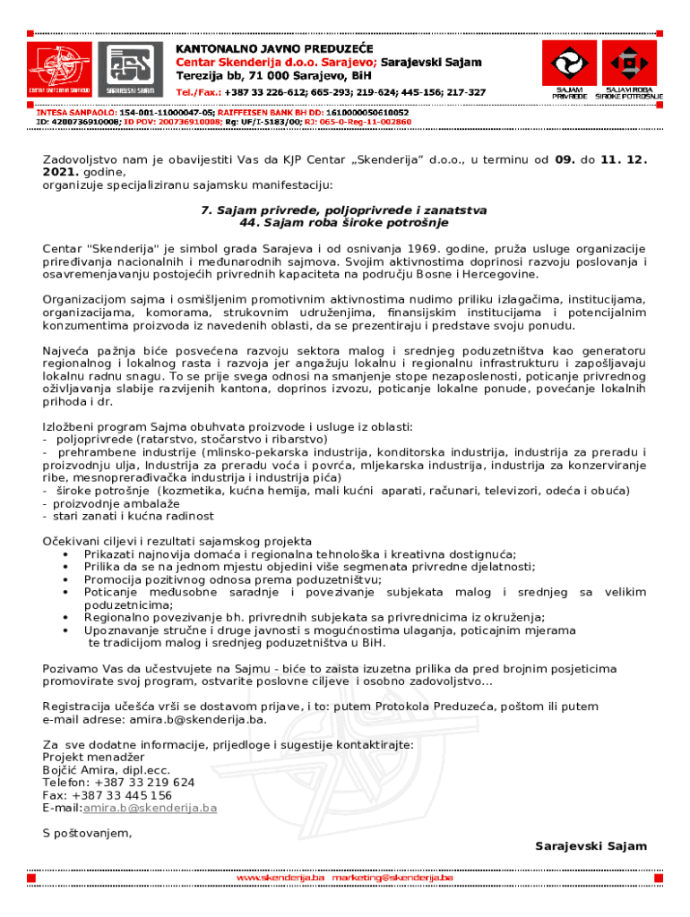 What is Zadovoljstvo nam je obavijestiti Vas da KJP Centar "Skenderija" d Form?