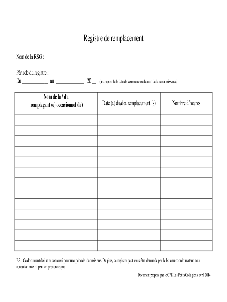 Comment remplir remplacement de la responsable