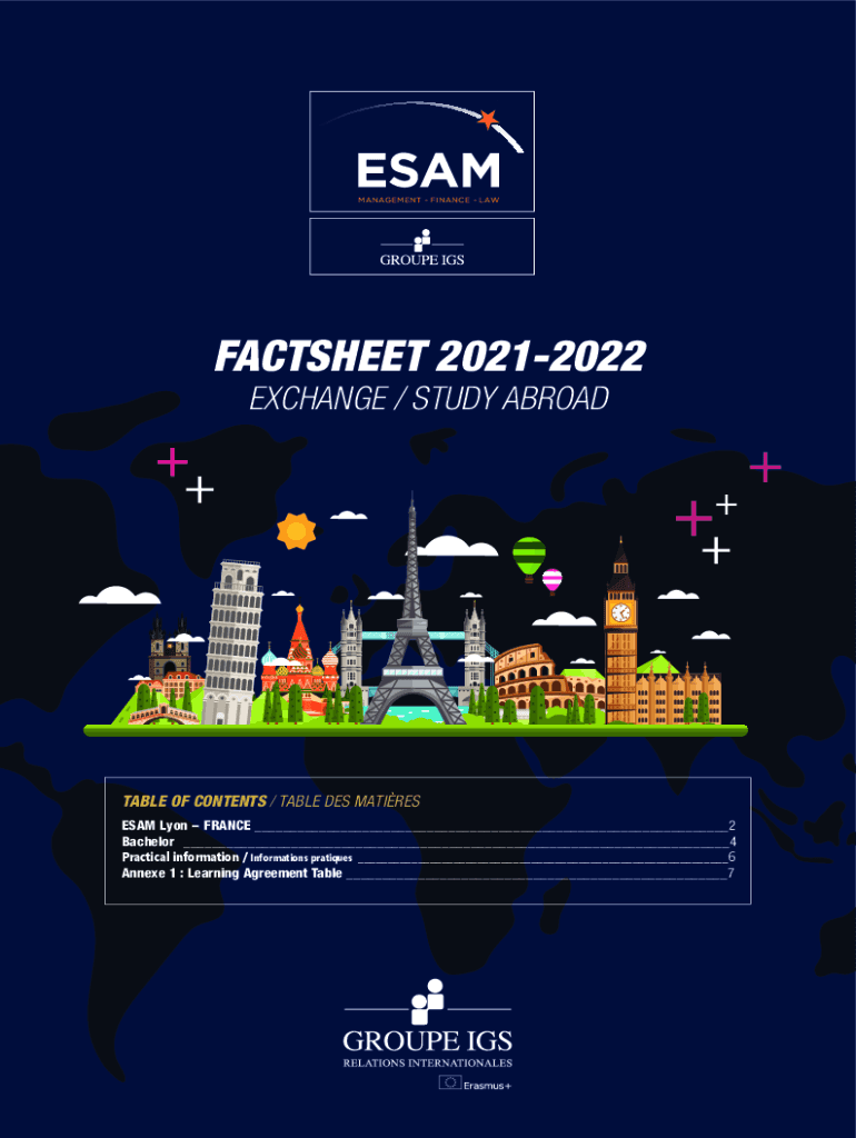 MANAGEMENT FINANCE LAWFACTSHEET 20212022 EXCHANGE / STUDY ABROADTABLE OF CONTENTS / TABLE DES MATIRES ESAM Lyon FRANCE ___2 Bachelor ___4 Practical information / Informations pratiques ___6 Annexe