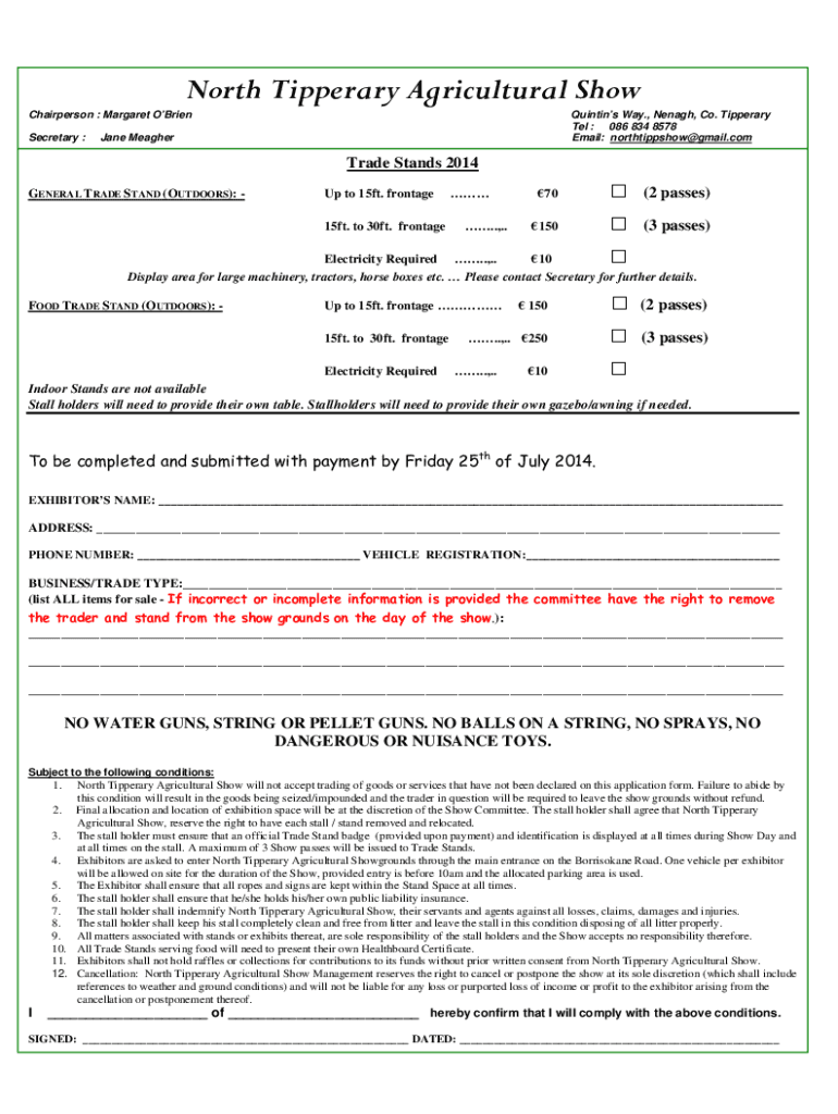 Email: northtippshow@gmail.comJane MeagherTrade Stands 2014