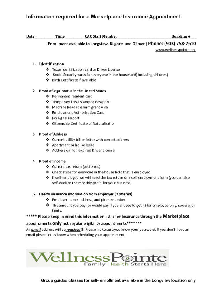 Information required for a Marketplace Insurance Appointment