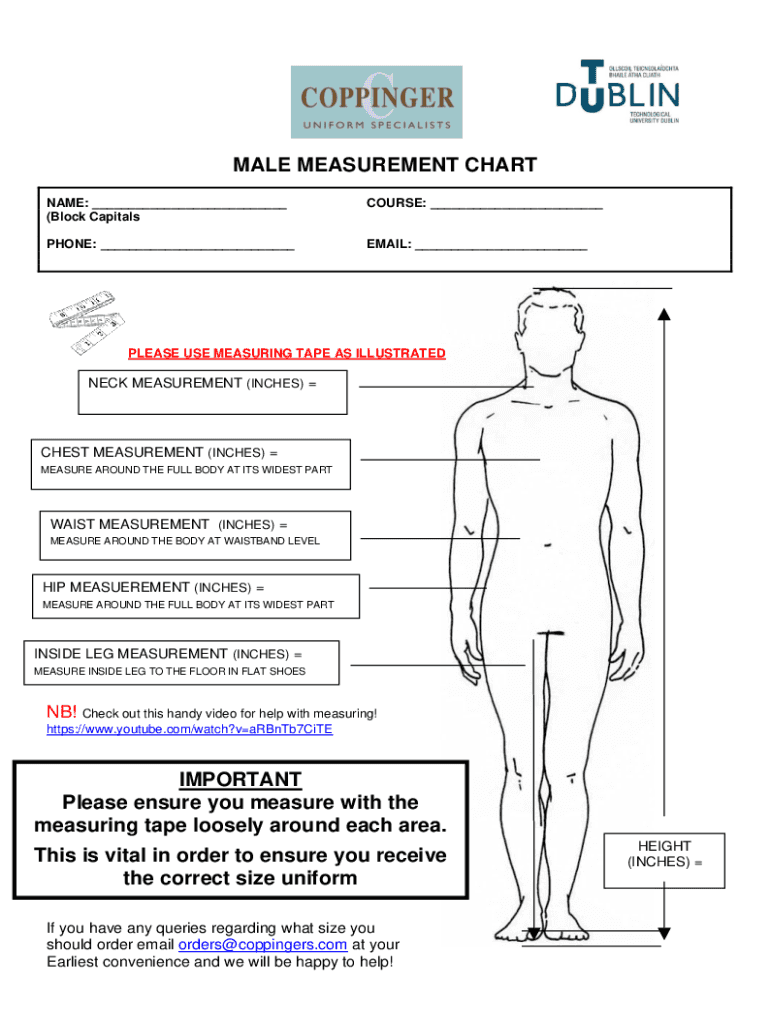 MALE MEASUREMENT CHART NAME: ___ (Block CapitalsCOURSE: ___PHONE: ___EMAIL: ___PLEASE USE MEASURING TAPE AS ILLUSTRATEDNECK MEASUREMENT (INCHES) CHEST MEASUREMENT (INCHES) MEASURE AROUND THE FULL