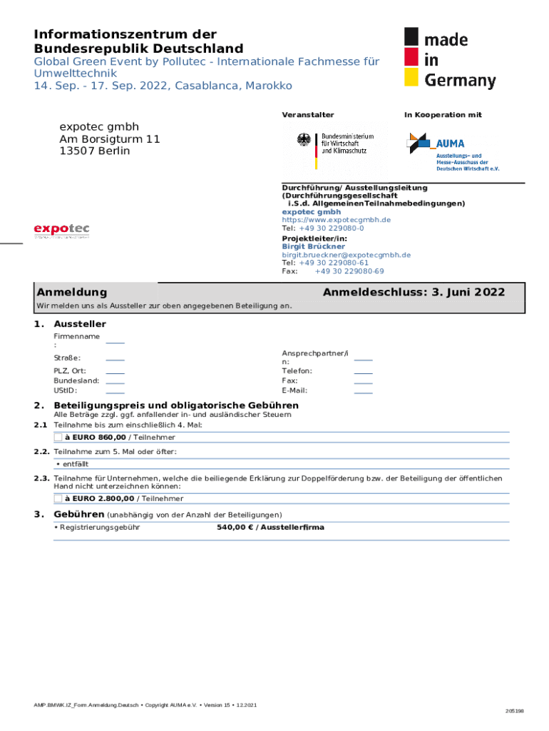 Prior to start filling out the Global Green Event by Pollutec in Morocco writable form, you ought to make certain that all the required info is prepared. This very part is important, as long as errors and simple typos may cause unpleasant consequences. It is usually unpleasant and time-consuming to resubmit forcedly the whole word form, not even mentioning penalties caused by missed deadlines. Handling the figures requires a lot of focus. At first sight, there’s nothing challenging about this. However, there's no anything challenging to make a typo. Professionals advise to save all the data and get it separately in a document. Once you've got a writable sample, you can just export that content from the document. Anyway, you ought to pay enough attention to provide accurate and valid data. Doublecheck the information in your Global Green Event by Pollutec in Morocco form carefully while filling all important fields. You are free to use the editing tool in order to correct all mistakes if there remains any.
