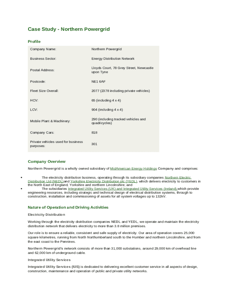 Template Northern Powergrid Holdings Co Company Profile - Overview instructions