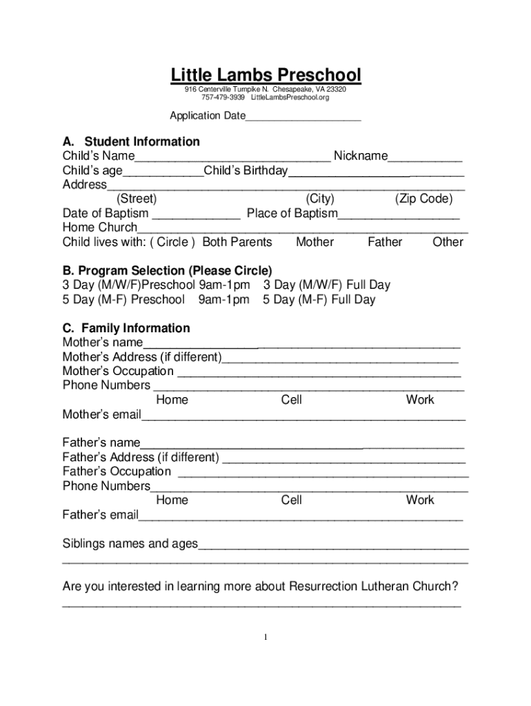 Get the free Little Lambs Preschool - Resurrection Lutheran Church