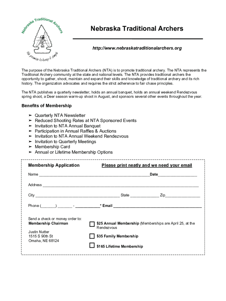 Visit the website of Nebraska Traditional Archers and navigate to the membership application page.