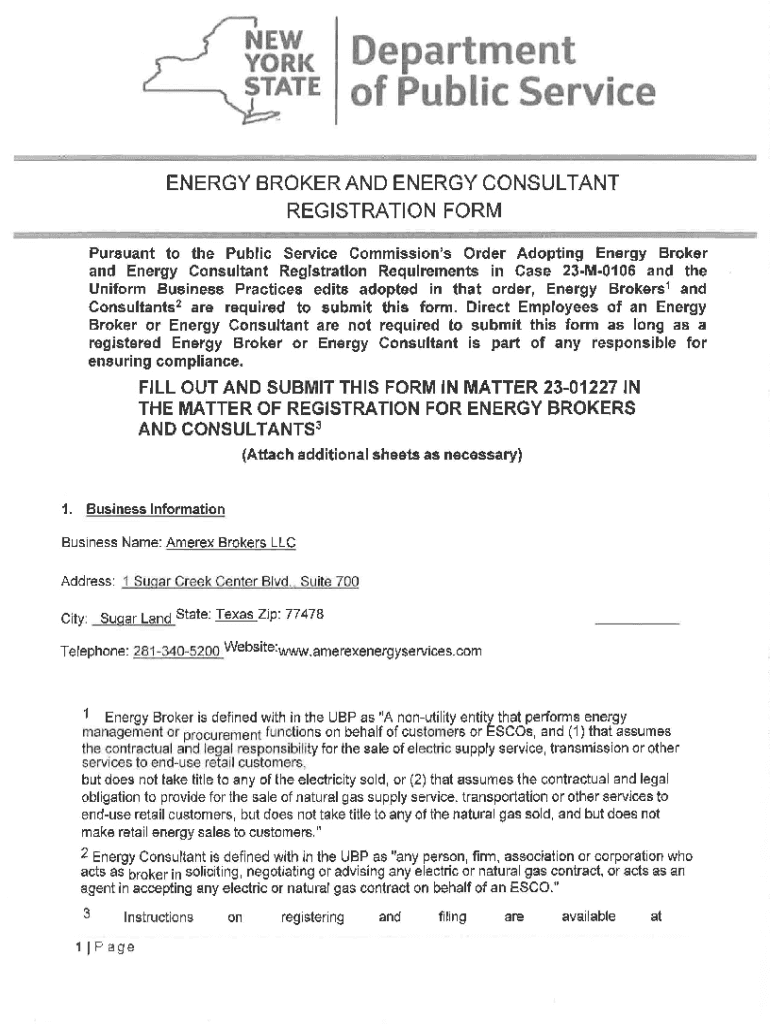 NEW YORK STATEDepartment of Public ServiceENERGY BROKER AND ENERGY CONSULTANT REGISTRATION FORM Pursuant to the Public Service Commission\'s Order Adopting Energy Broker and Energy Consultant Registration