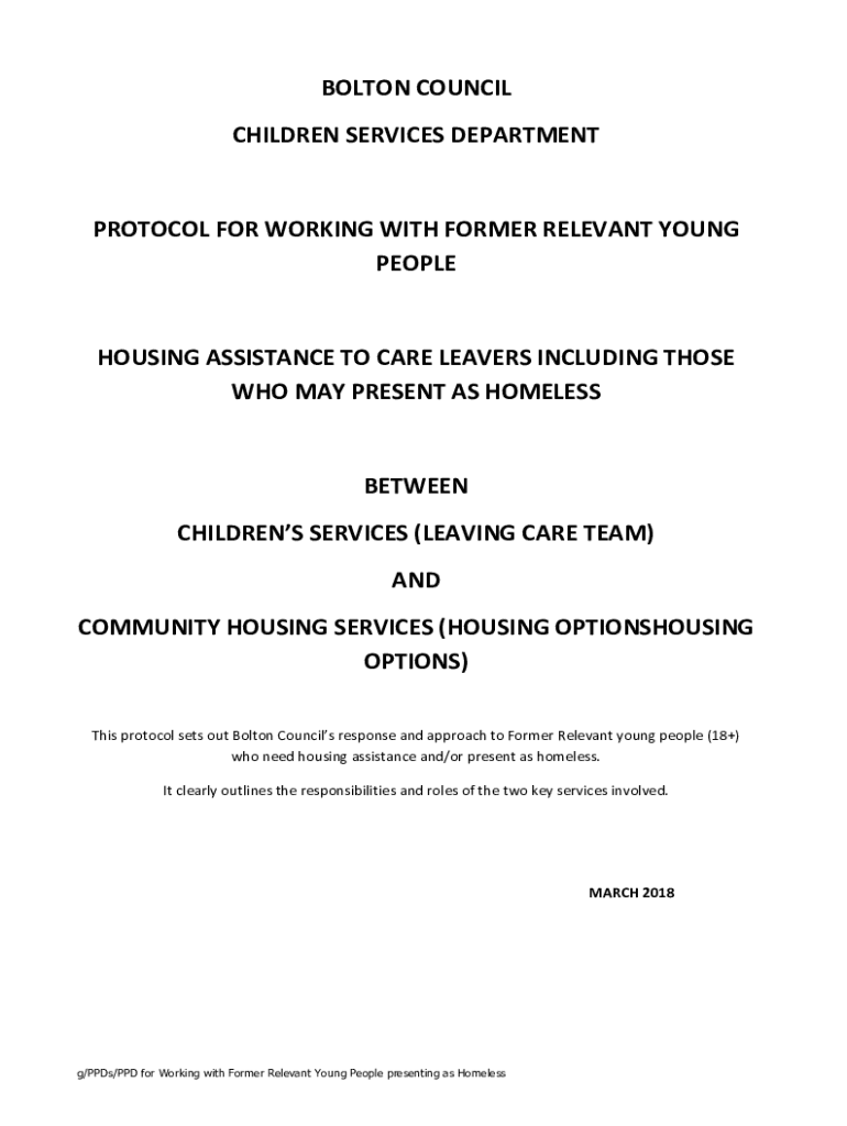 CHILDREN SERVICES DEPARTMENTPROTOCOL FOR WORKING WITH FORMER RELEVANT YOUNG