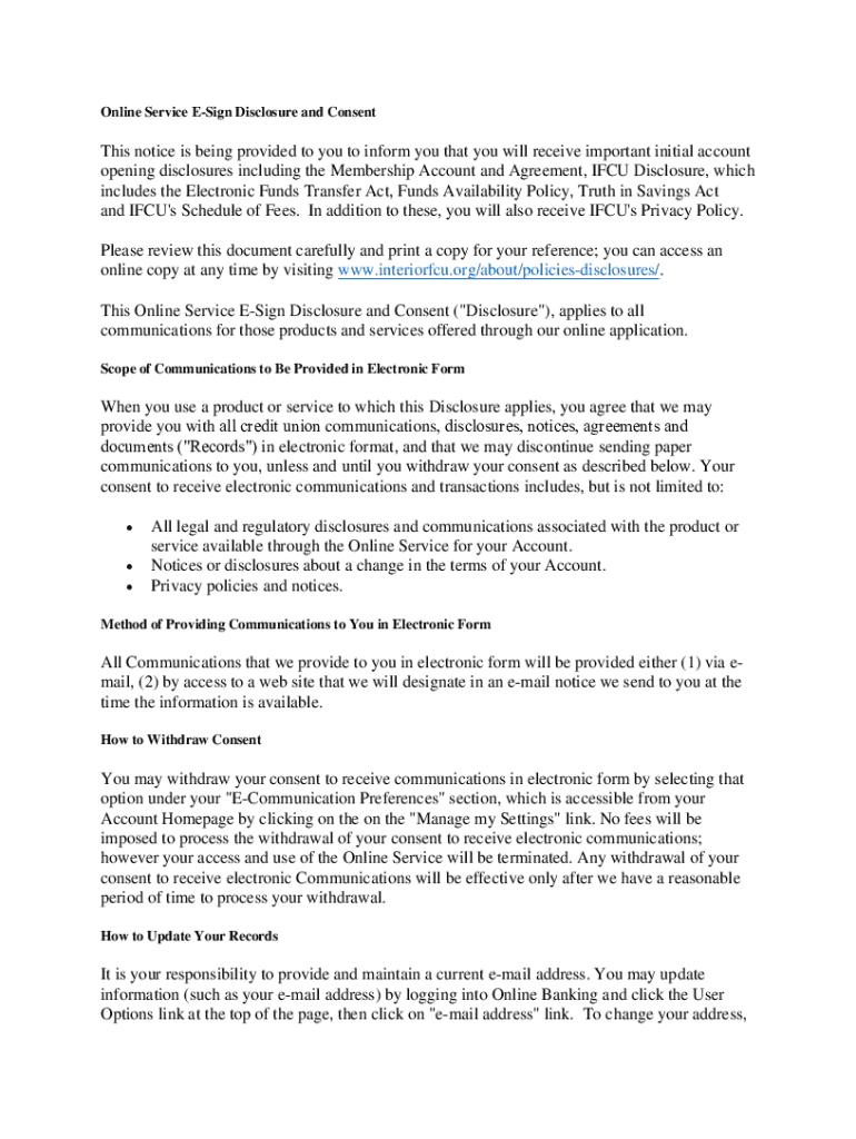 Online Service ESign Disclosure and ConsentThis notice is being provided to you to inform you that you will receive important initial account opening disclosures including the Membership Account and
