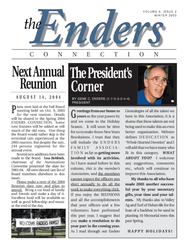 Get the free Next Annual Reunion The President's Corner
