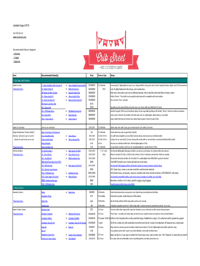 BabyListItemRecommended Brand(s)PriceTerm of UseNotesEconomy pick lightweight and easy to use.