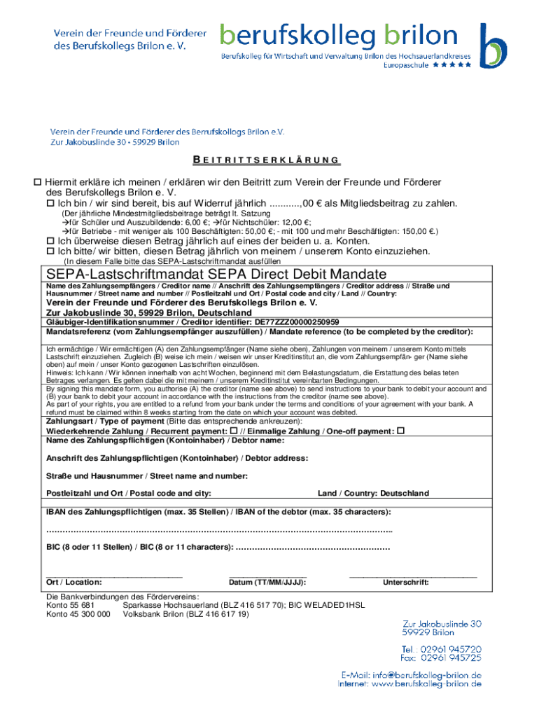 Hiermit erklre ich meinen / erklren wir den Beitritt zum Verein der Freunde und Frderer
