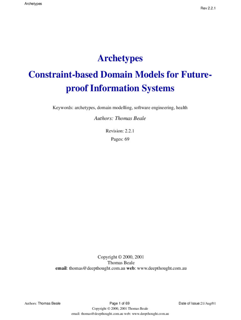 Archetypes Rev 2.2.1Archetypes Constraintbased Domain Models for Futureproof Information Systems Keywords: archetypes, domain modelling, software engineering, healthAuthors: Thomas Beale Revision: