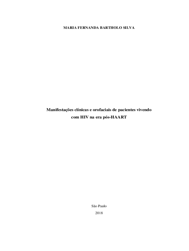 MARIA FERNANDA BARTHOLO SILVAManifestaes clnicas e orofaciais de pacientes vivendo com HIV na era psHAARTSo Paulo 2018MARIA FERNANDA BARTHOLO SILVAManifestaes clnicas e orofaciais de pacientes vivendo