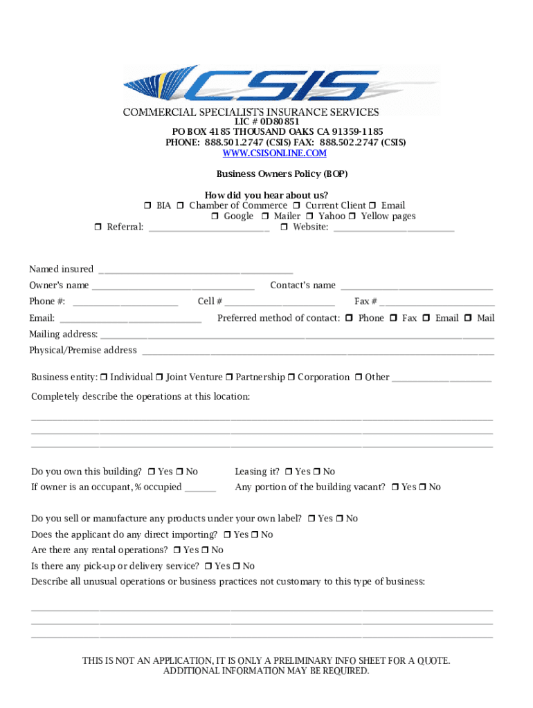 How to fill out business owners policyget a