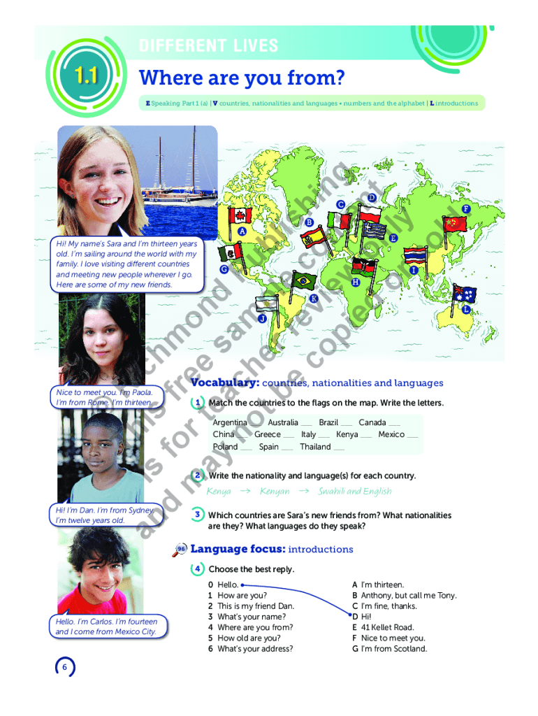 DIFFERENT LIVES1.1Where are you from?Th R an is is ich d fo fr m m r ee o nd ay te sa a no ch m Pu t b er pl bl e re e c ish co vi o in pi ew nte g ed o n t n or ly so ld .E Speaking Part 1 (a) |