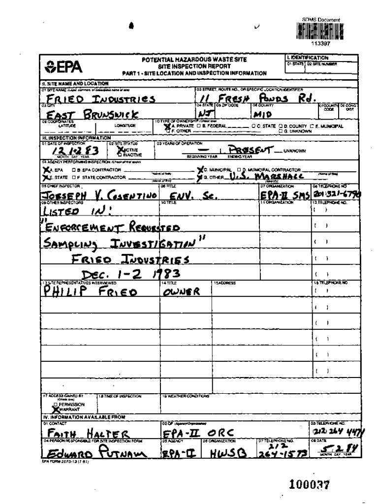 Get the free POTENTIAL HAZARDOUS WASTE SITE INSPECTION ...