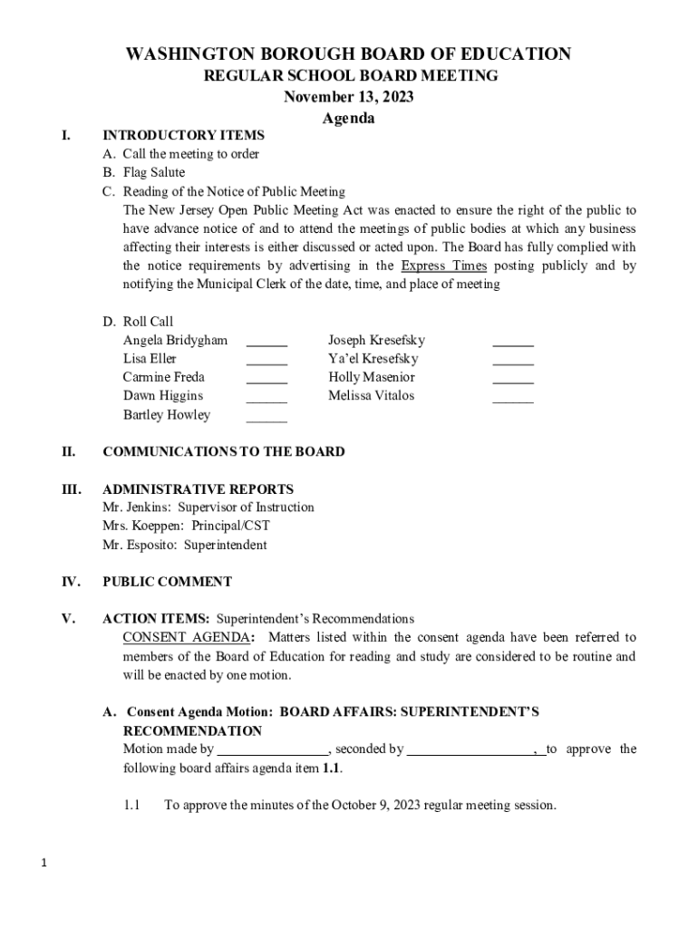 WASHINGTON BOROUGH BOARD OF EDUCATION