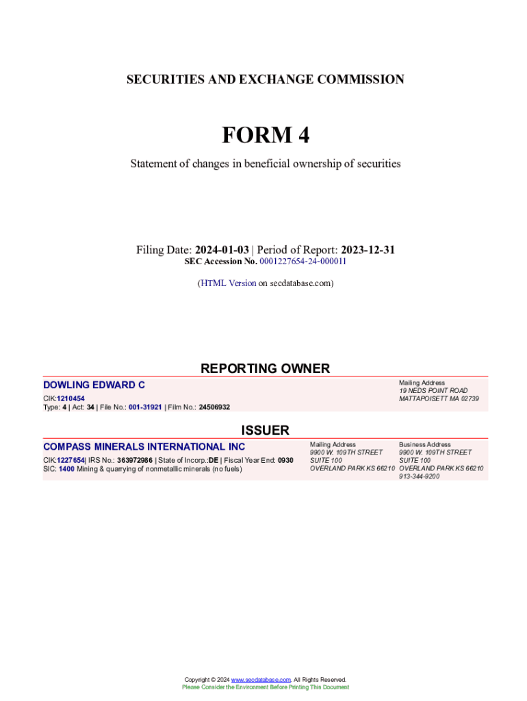 Get the free DOWLING EDWARD C Form 4 Filed 2024-01-03. Accession Number