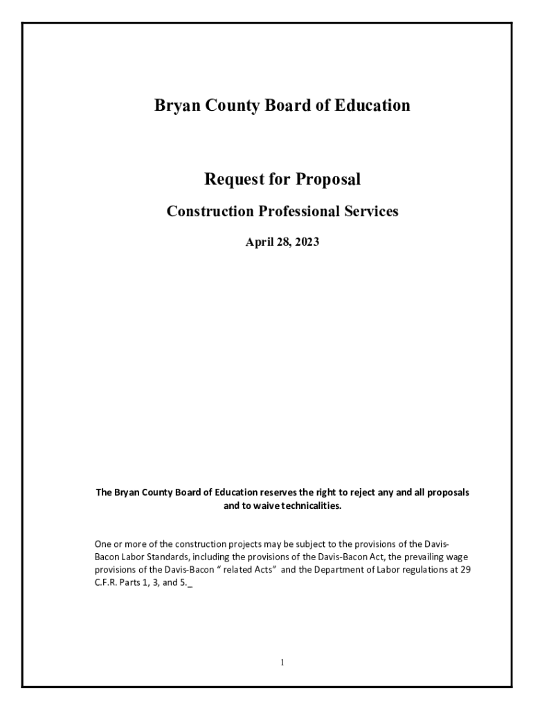 Bryan County Board of EducationRequest for Proposal Construction Professional Services April 28, 2023The Bryan County Board of Education reserves the right to reject any and all proposals and to waive