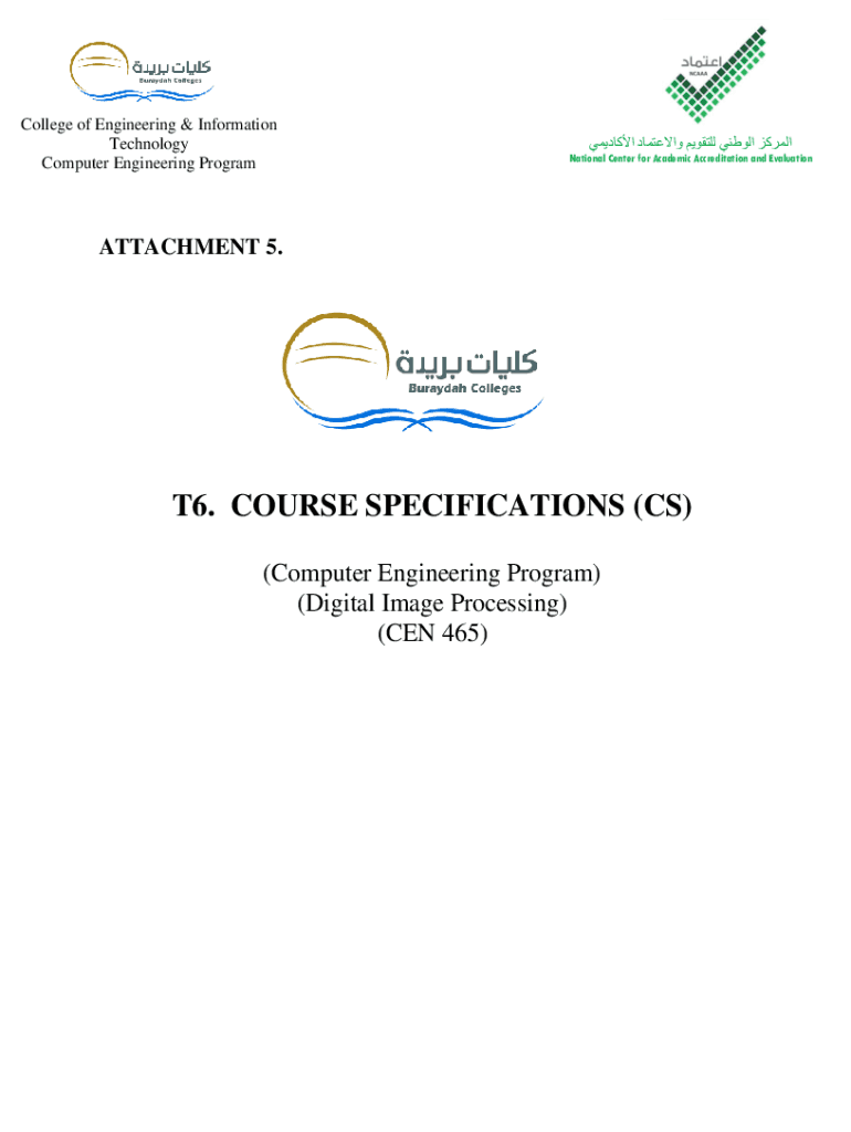 College of Engineering & Information Technology Computer Engineering Program National Center for Academic Accreditation and EvaluationATTACHMENT 5.T6. COURSE SPECIFICATIONS (CS) (Computer Engineering