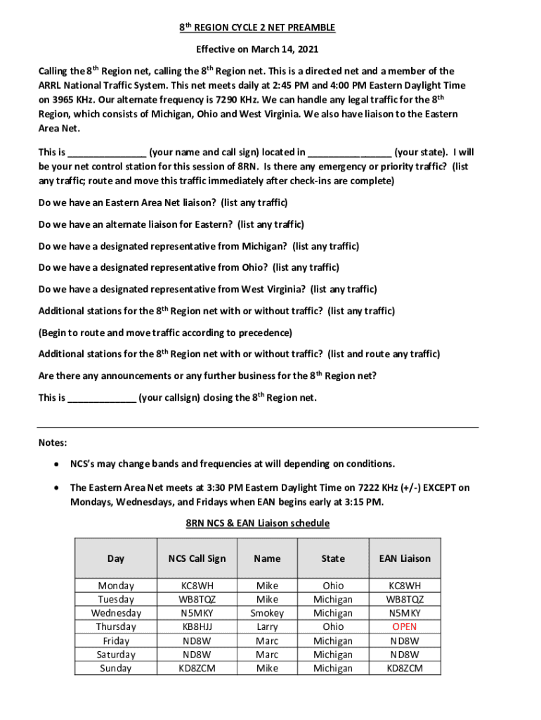 Calling the 8th Region net, calling the 8th Region net. This is a directed net and a member of the