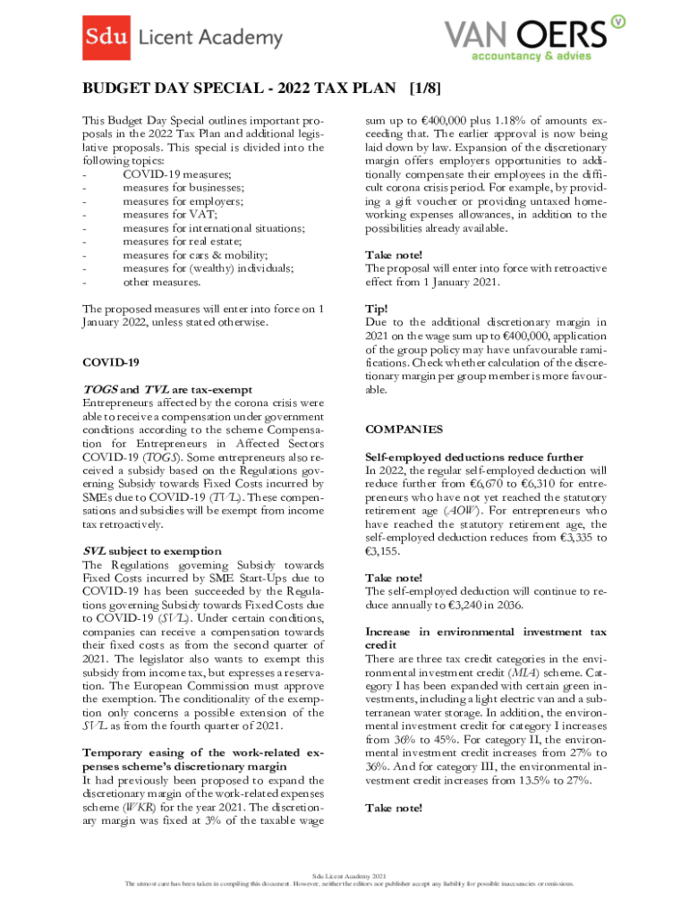 BUDGET DAY SPECIAL 2022 TAX PLAN [1/8] This Budget Day Special outlines important proposals in the 2022 Tax Plan and additional legislative proposals. This special is divided into the following topics: