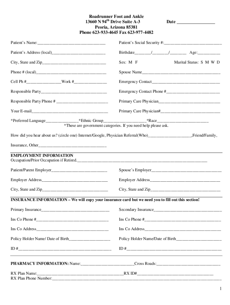 Get the free Online Roadrunner Foot and Ankle 13660 N 94th ...
