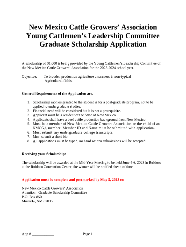The Cattle Growers' to offer Purina Mills Scholarships is a document that can be filled-out and signed for specific needs. Next, it is provided to the exact addressee to provide specific details and data. The completion and signing may be done manually or via a suitable tool like PDFfiller. These applications help to send in any PDF or Word file online. It also allows you to customize it depending on the needs you have and put an official legal electronic signature. Once you're good, you send the Cattle Growers' to offer Purina Mills Scholarships to the respective recipient or several of them by email or fax. PDFfiller has a feature and options that make your document of MS Word extension printable. It has a number of options for printing out. It doesn't matter how you'll send a form after filling it out - physically or electronically - it will always look neat and organized. To not to create a new file from the beginning again and again, turn the original document into a template. After that, you will have an editable sample.
