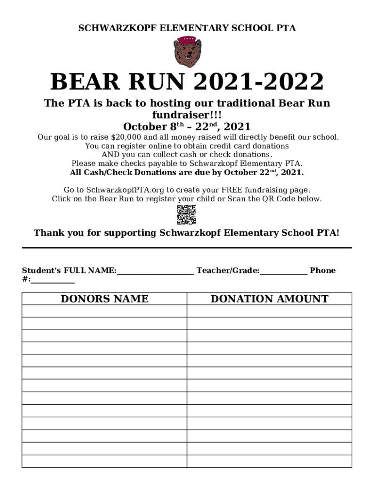 Instructions for the Bear Run was an... - Schwarzkopf Elementary School PTA ... Doc ... form