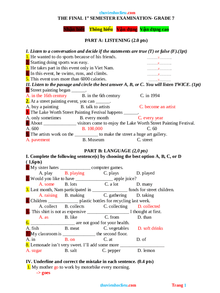 What is II. Read the passage. Circle the best answer A, B, C or D to ... Form?