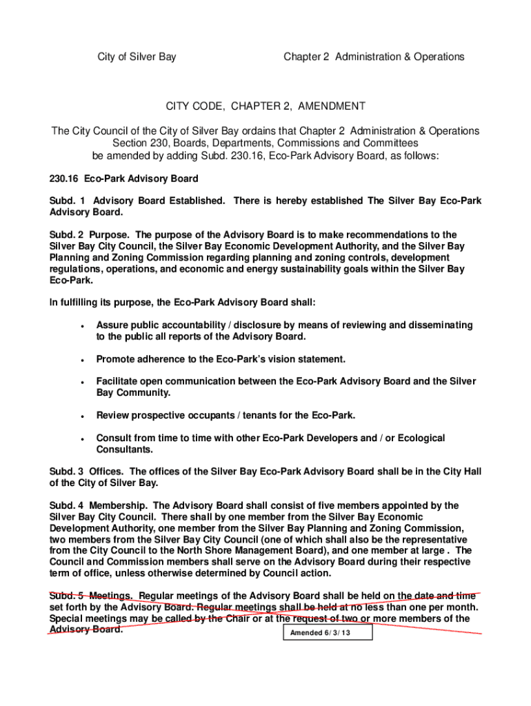City of Silver BayChapter 2 Administration & OperationsCITY CODE, CHAPTER 2, AMENDMENT The City Council of the City of Silver Bay ordains that Chapter 2 Administration & Operations Section 230, Boards,