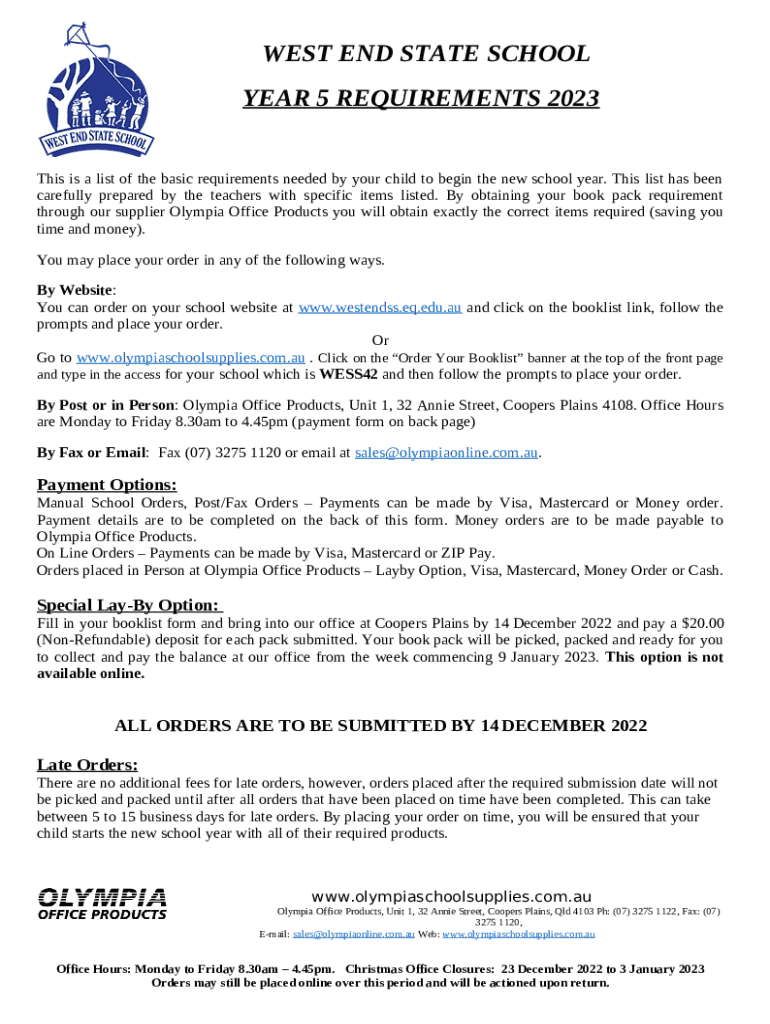 Frequently asked questions about the form This list has been carefully prepared by the teachers with specific items listed - westendss eq edu