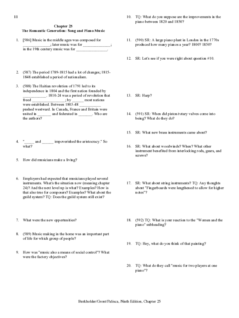 1110.TQ: What do you suppose are the improvements in the piano between 1820 and 1850?11.(590) SR: A large piano plant in London in the 1770s produced how many pianos a year? 1800? 1850?12.SR: Let\'s