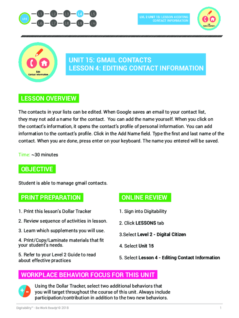U15L1L2L3L4L5L6L7L8L9L10LVL 2 UNIT 15: LESSON 4 EDITING CONTACT INFORMATION UNIT 10: LESSON 7 GMAIL SIGN INUNIT 15: GMAIL CONTACTS LESSON 4: EDITING CONTACT INFORMATIONLESSON OVERVIEW The contacts