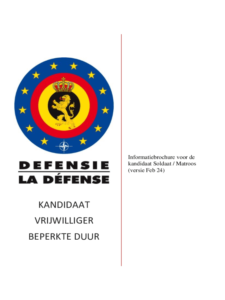 Informatiebrochure voor de kandidaat Soldaat / Matroos (versie Feb 24)KANDIDAAT VRIJWILLIGER BEPERKTE DUURONTHAAL We heten je van harte welkom bij Defensie en willen je nu al feliciteren voor je engagement.