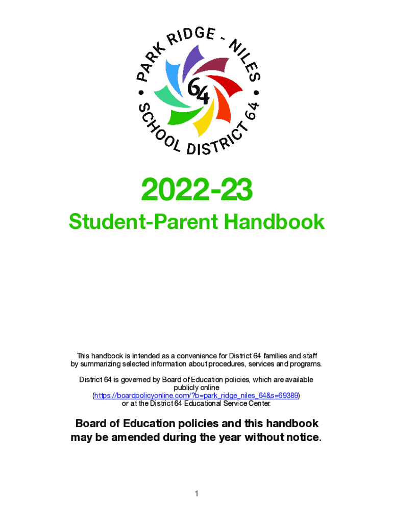 202223 StudentParent HandbookThis handbook is intended as a convenience for District 64 families and staffby summarizing selected information about procedures, services and programs. District 64 is