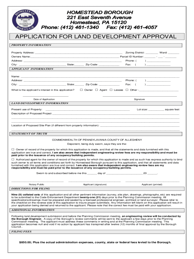 APPLICATION FOR LAND DEVELOPMENT APPROVAL PROPERTY INFORMATION Property Address: ___Zoning District: ___ Ward: ___Owners Name:___ Parcel ID Number: ___ ___ ___ Address: ___Phone: () ___City: ___ State:___