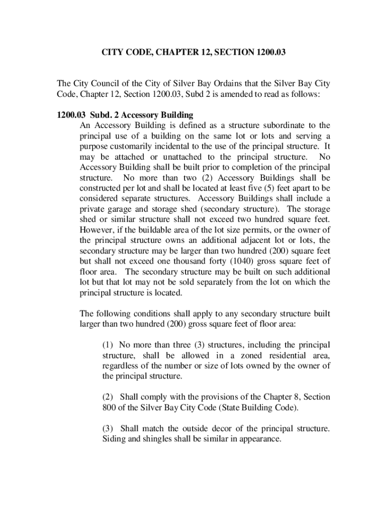 CITY CODE, CHAPTER 12, SECTION 1200.03The City Council of the City of Silver Bay Ordains that the Silver Bay City Code, Chapter 12, Section 1200.03, Subd 2 is amended to read as follows: 1200.03 Subd.