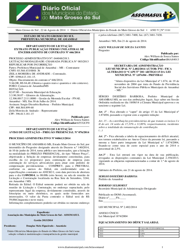Obtenha o gratuito Prefeitura Municipal de Anastcio-MS - Dirio Oficial