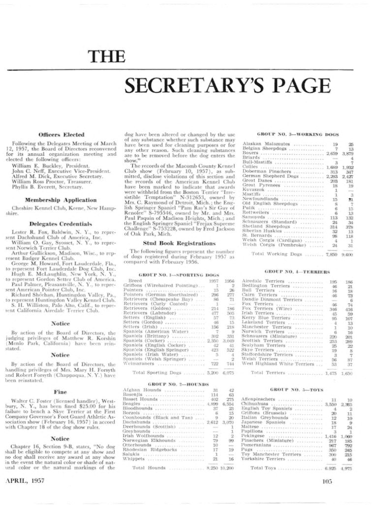 THESECRETARYS PAGE Officers Elected Following the Delegates Meeting of March 12, 1957, the Board of Directors reconvened for its annual organization meeting and elected the following officers: William