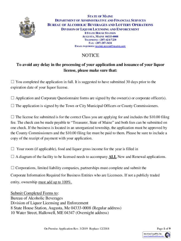 STATE OF MAINE DEPARTMENT OF ADMINISTRATIVE AND FINANCIAL SERVICESBUREAU OF ALCOHOLIC BEVERAGES AND LOTTERY OPERATIONS DIVISION OF LIQUOR LICENSING AND ENFORCEMENT 8 STATE HOUSE STATION AUGUSTA, MAINE