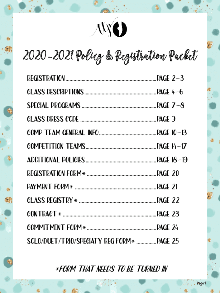 20202021 Policy & Registration Packet REGISTRATION .................................................................... PAGE 23 CLASS DESCRIPTIONS......................................................