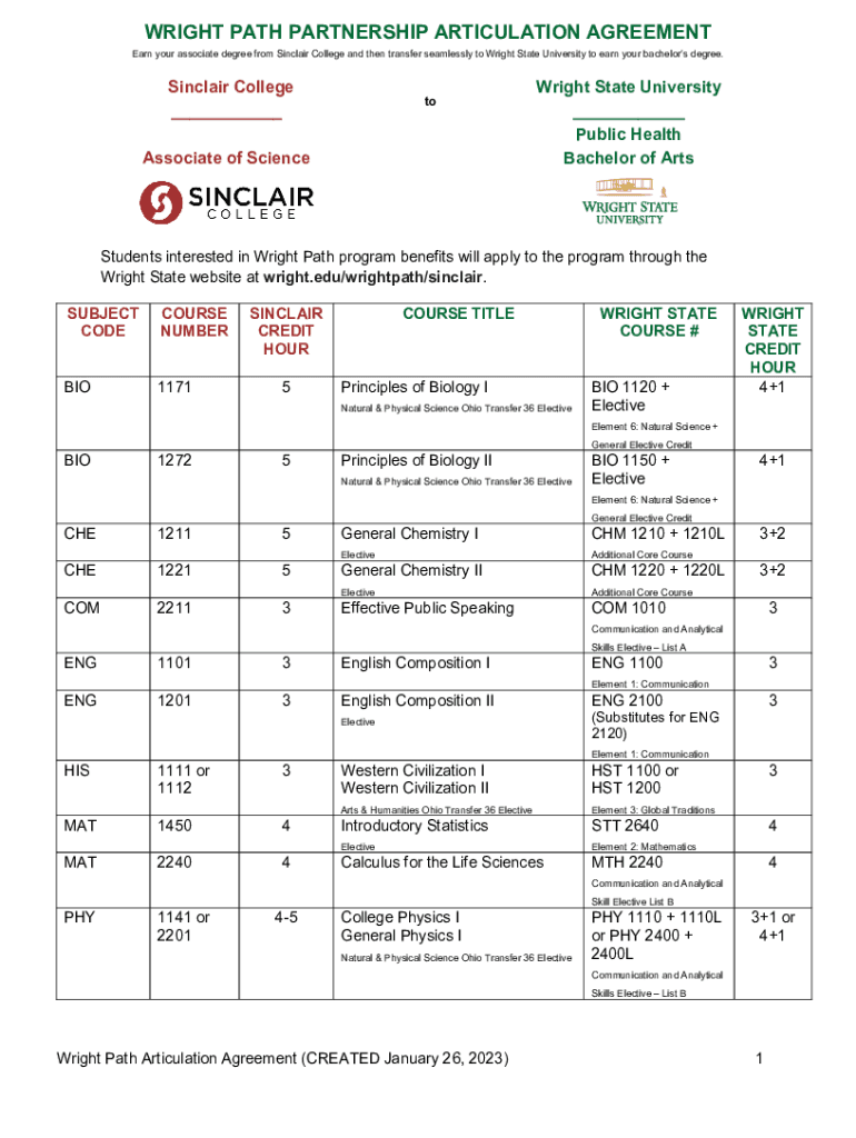 WRIGHT PATH PARTNERSHIP ARTICULATION AGREEMENT Earn your associate degree from Sinclair College and then transfer seamlessly to Wright State University to earn your bachelors degree.Sinclair College